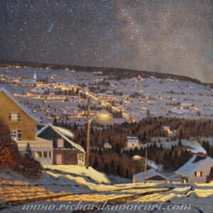 Dans le monde pictural de Richard Savoie le sujet, même en pleine nuit, semble exploser d’une lumière toute vers l’avant alors que les personnages qui habitent ses tableaux tournent le dos au narrateur, semblant laisser celui-ci en observateur comme si il capturait un fugitif instant.
